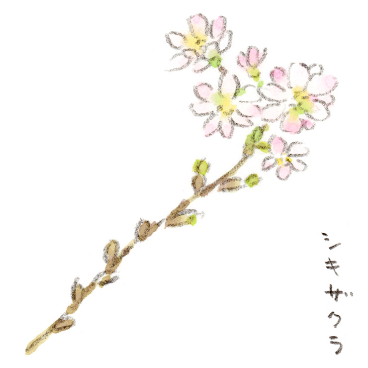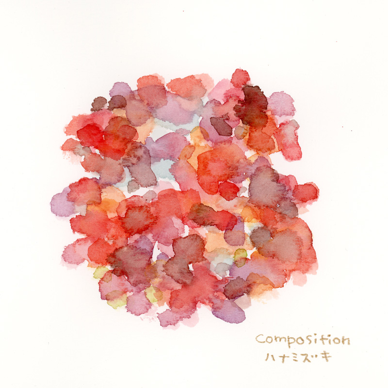 色のスケッチ、キンシバイの紅葉。キンシバイは細長い葉が真っ赤に染まり、まだ染まってないミントグリーンの葉とのコントラストが綺麗でした。初夏の黄色い花が印象的でしたが、秋の紅葉も華やかですね。