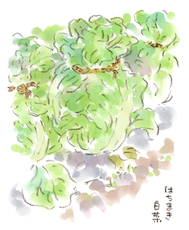 野菜直売所の畑にわら縄ではち巻きをした白菜が沢山育っていました。気合い入ってるみたいで可愛い。縛ることで形が崩れないようにしているのだそうです。また霜害から守り、糖度が上がるなどの効果もあるようです。風情ある日本の風景は素敵ですね。