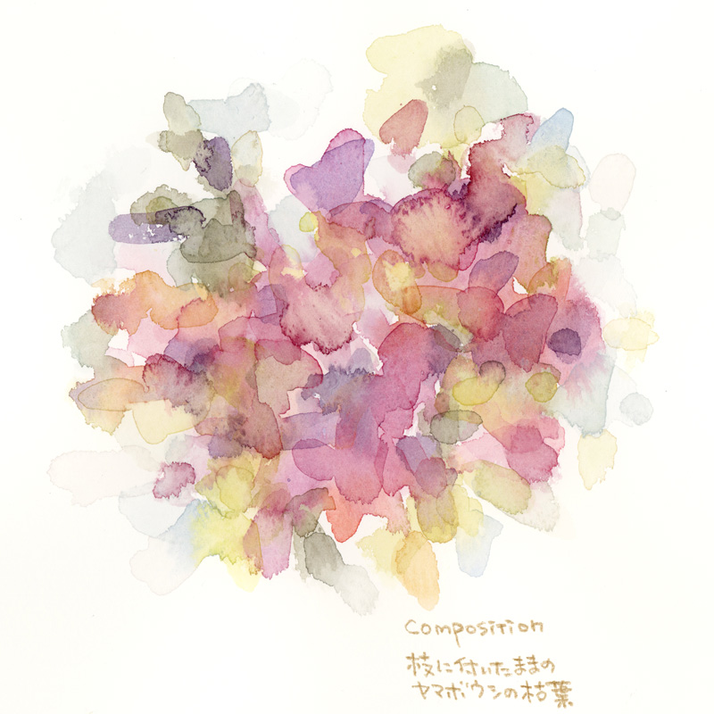 雪の日に見た風景。ヤマボウシの枝の上に積もった雪と若干色味の残る枯れ葉。色のコントラストが美しかったです。