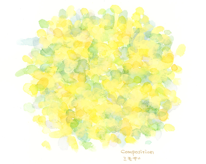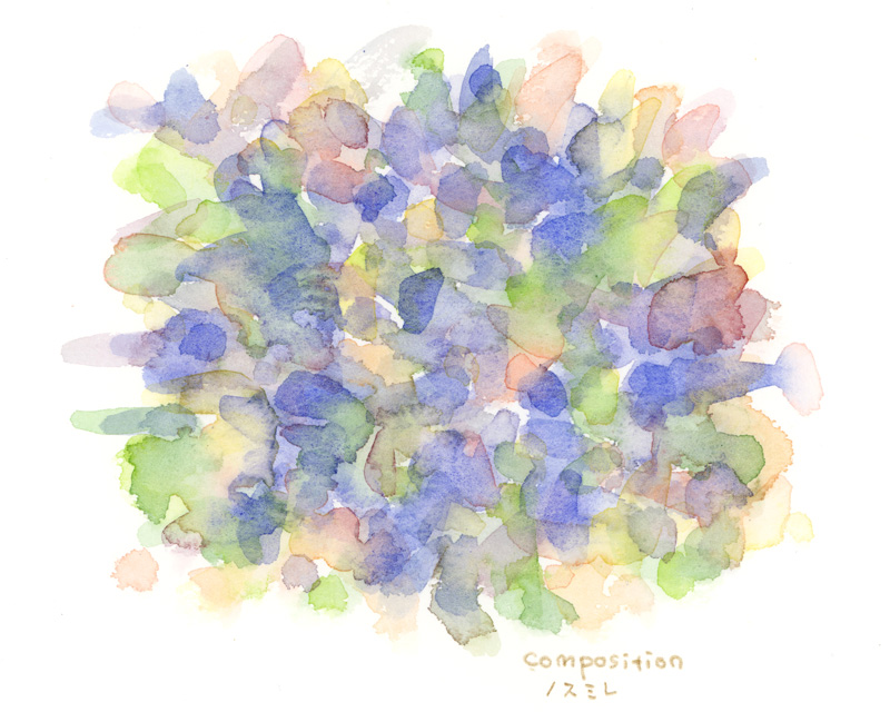 先日と同じテーマでサザンカの色彩スケッチをしました。今回は感じた色の印象をメインに、自由な印象になるように描いてみました。(Acryl Deneb, 透明水彩)