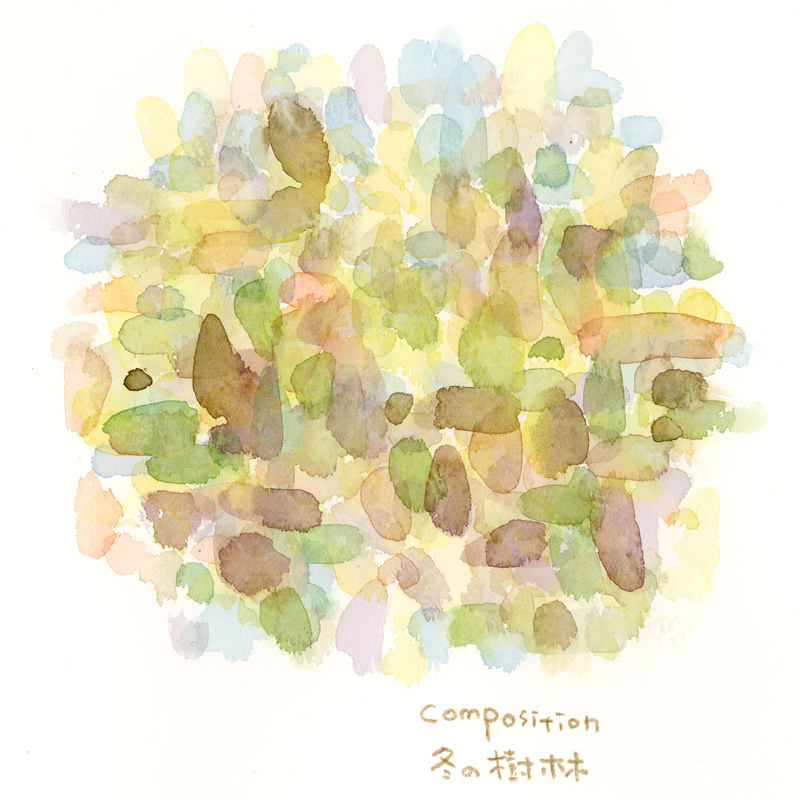 先日と同じテーマでサザンカの色彩スケッチをしました。今回は感じた色の印象をメインに、自由な印象になるように描いてみました。(Acryl Deneb, 透明水彩)