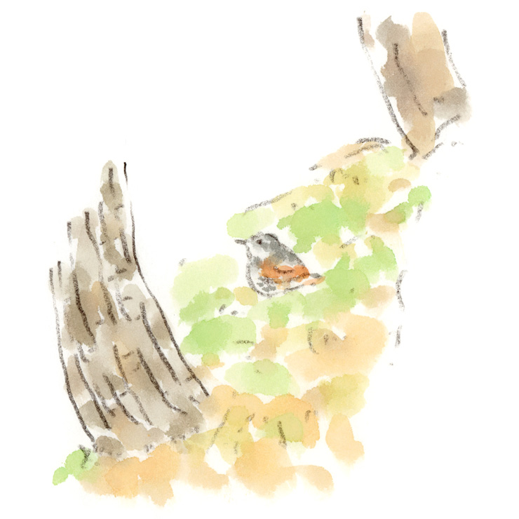 四谷の緑道でよく見かけるオスのツグミ。線路沿いの斜面に一羽、堀を眺めるような姿勢で佇んでいます。ここを住み処にしてるのかな?哀愁のある背中が魅力的なのです。